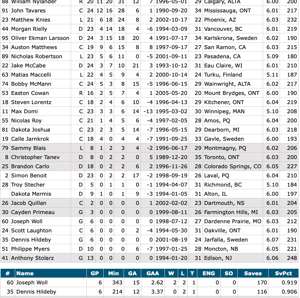 Potential scratches: William Nylander (illness), Max Domi (more on that below)