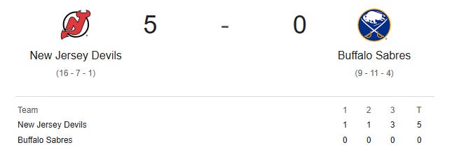 On Friday afternoon, the New Jersey Devils faced the Buffalo Sabres on the road, resulting in the Devils’ first shutout win of the season.