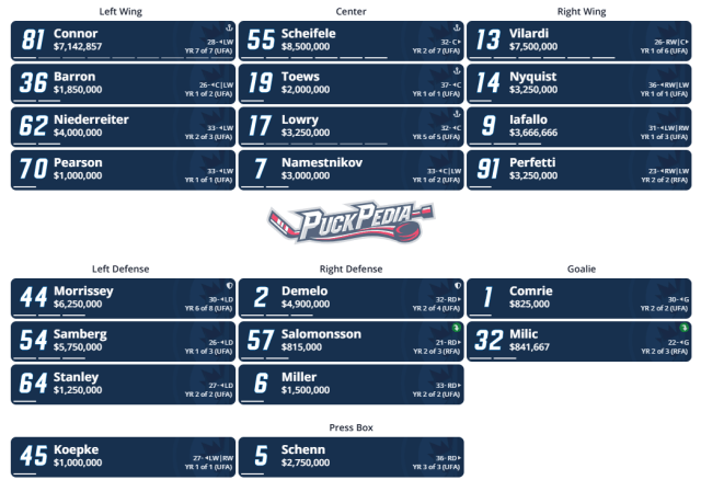 WINNIPEG: Mark Scheifele (30), Kyle Connor (28), Josh Morrissey (23), Gabriel Vilardi (19), & Nino Niederreiter (13).