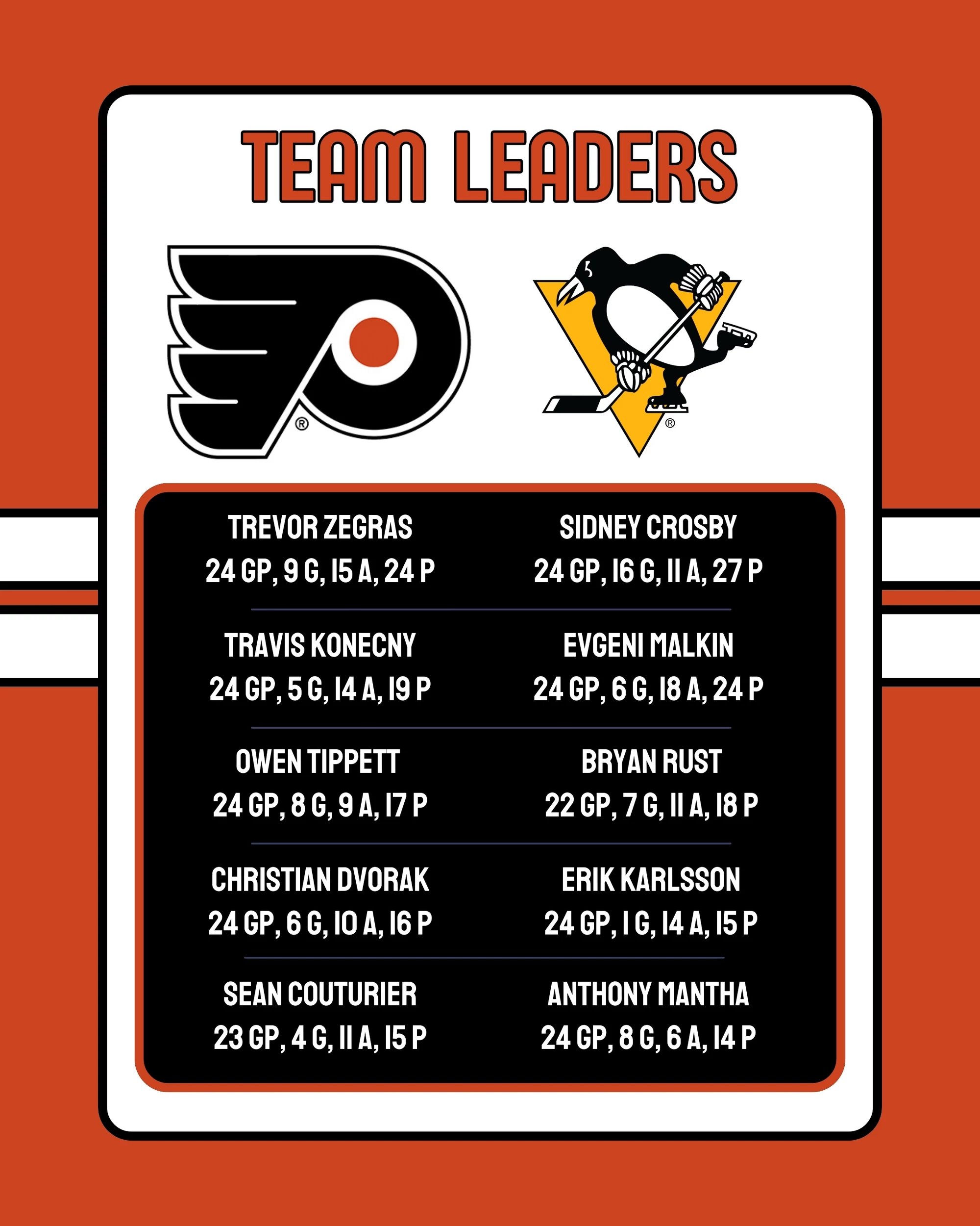 Flyers-Penguins Team Leaders 12-1-2025Flyers-Penguins Team Leaders 12-1-2025Flyers-Penguins Players to Watch 12-1-2025Flyers-Penguins Players to Watch 12-1-2025