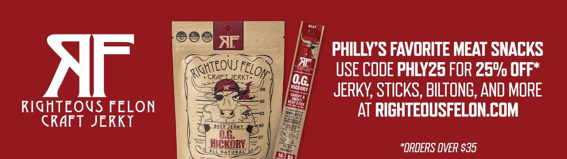 Use code PHLY25 for 25 percent off orders of 35 bucks or more. They have so many great flavors like OG Hickory, Street Taco Pork, Lemon Pepper Turkey, Spicy Habanero and so much more. Take it from me, they are all delicious. Check it out today!