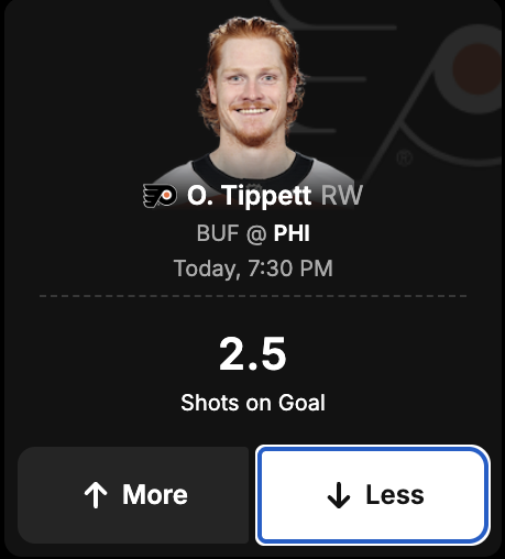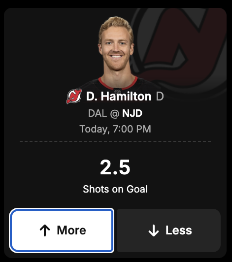 DraftKings Network projection: 53% likely to have MORE than 2.5 Shots on Goal