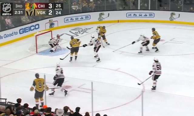 Vegas scores with another shot that deflects off a Blackhawks’ defender and in. Unreal. pic.twitter.com/OmlX0XhBHL