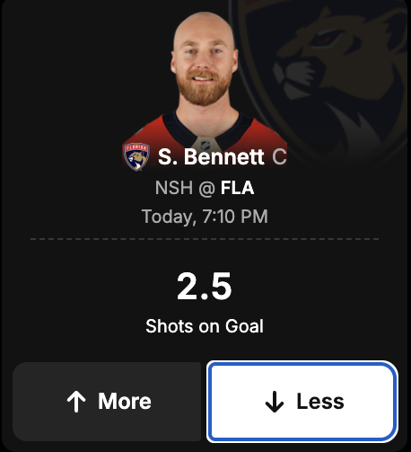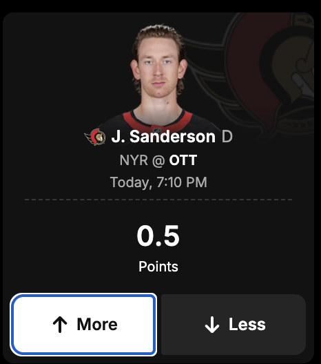 DraftKings Network projection: 55% likely to have LESS than 2.5 Shots on Goal