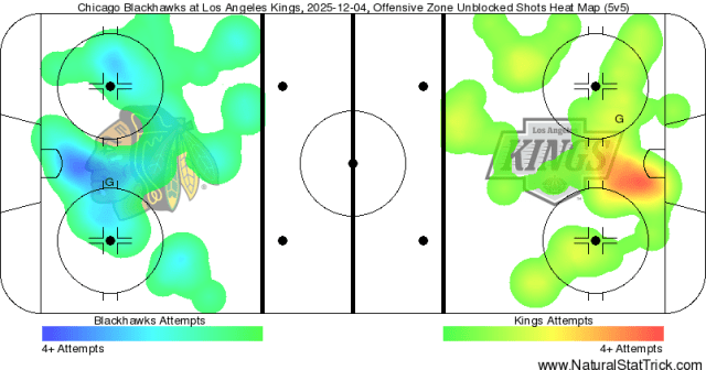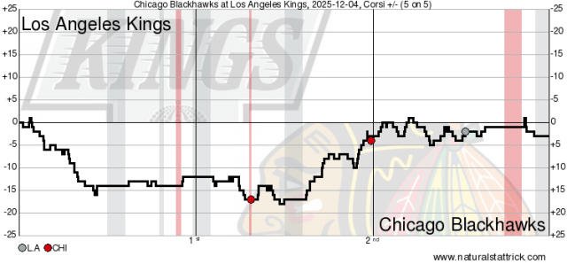 It also seemed like the Hawks were constantly throwing cross-ice pieces in or near the neutral zone, likely as part of an attempt to get the Kings defense moving and open up some space in the middle portions of the ice that Kings love to clog during games. The puck is always going to move faster than any set of skates.