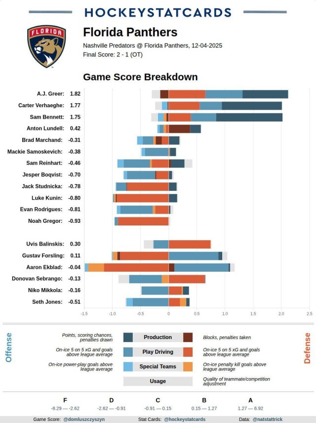 Florida’s penalty killers took care of all five of Nashville’s power play opportunities.