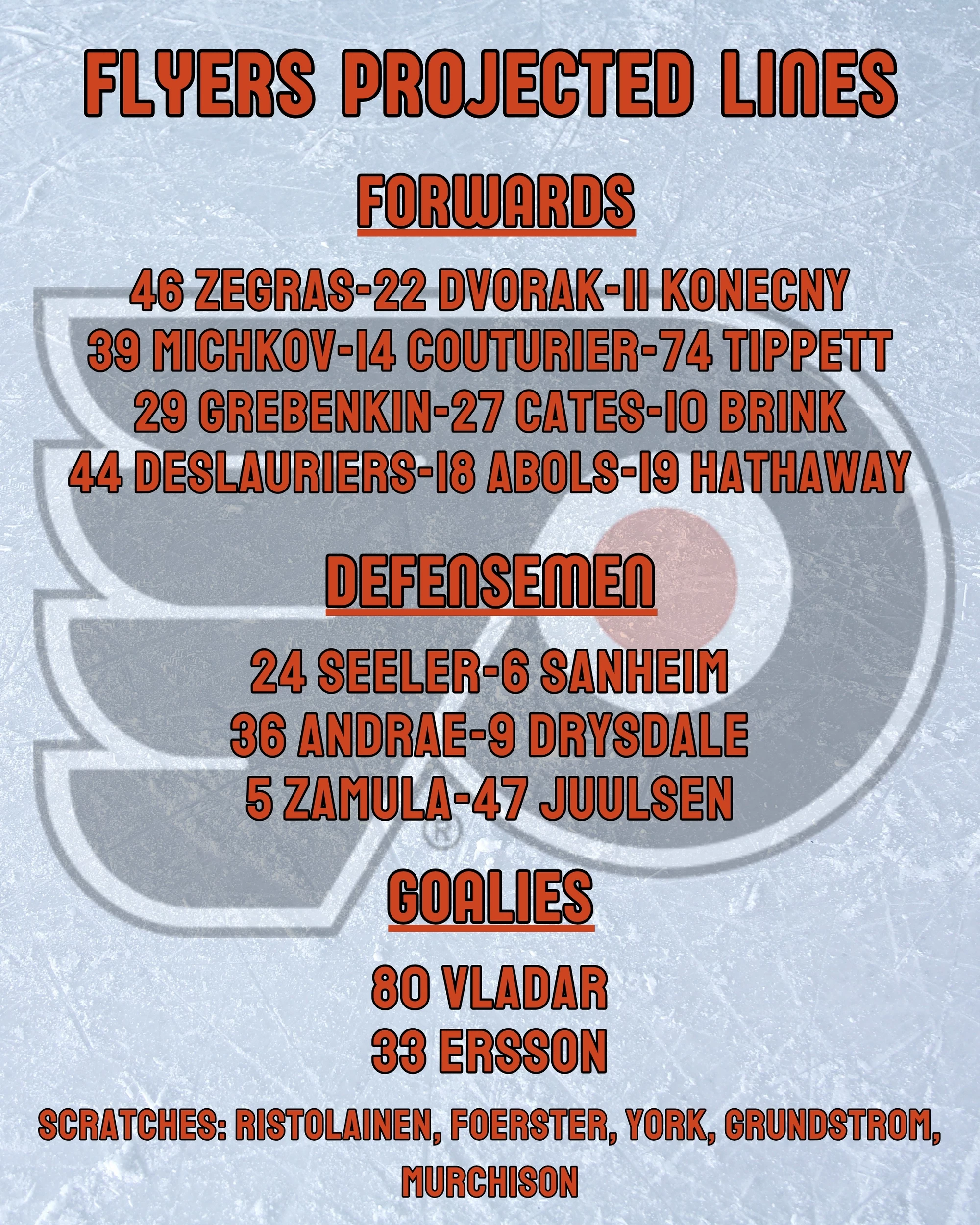 Projected LineupsFlyers Lines 12-7-2025Flyers Lines 12-7-2025Avalanche Lines 12-7-2025Avalanche Lines 12-7-2025Lineup NotesFlyers: Cam York left Wednesday’s game with an upper-body injury and is listed as day-to-day. He missed practice on both Thursday and Saturday and is not expected to play. If York is out, Nick Seeler would move into the spot next to Travis Sanheim. Noah Juulsen would come back into the lineup.Avalanche: The Avalanche are expected to use the same lineup as Saturday’s game.Flyers-Avalanche Game Notes 12-7-2025Flyers-Avalanche Game Notes 12-7-2025Where to Watch NBC Sports Philadelphia NHL NetworkWhere to Watch NBC Sports Philadelphia/NHL Network