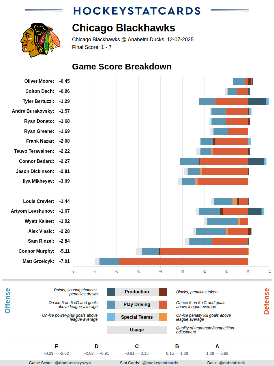 No, we’re not going to look at any of the seven goals Anaheim scored. We will look at the one Chicago scored, which was from Tyler Bertuzzi but came long after the outcome had been decided:
