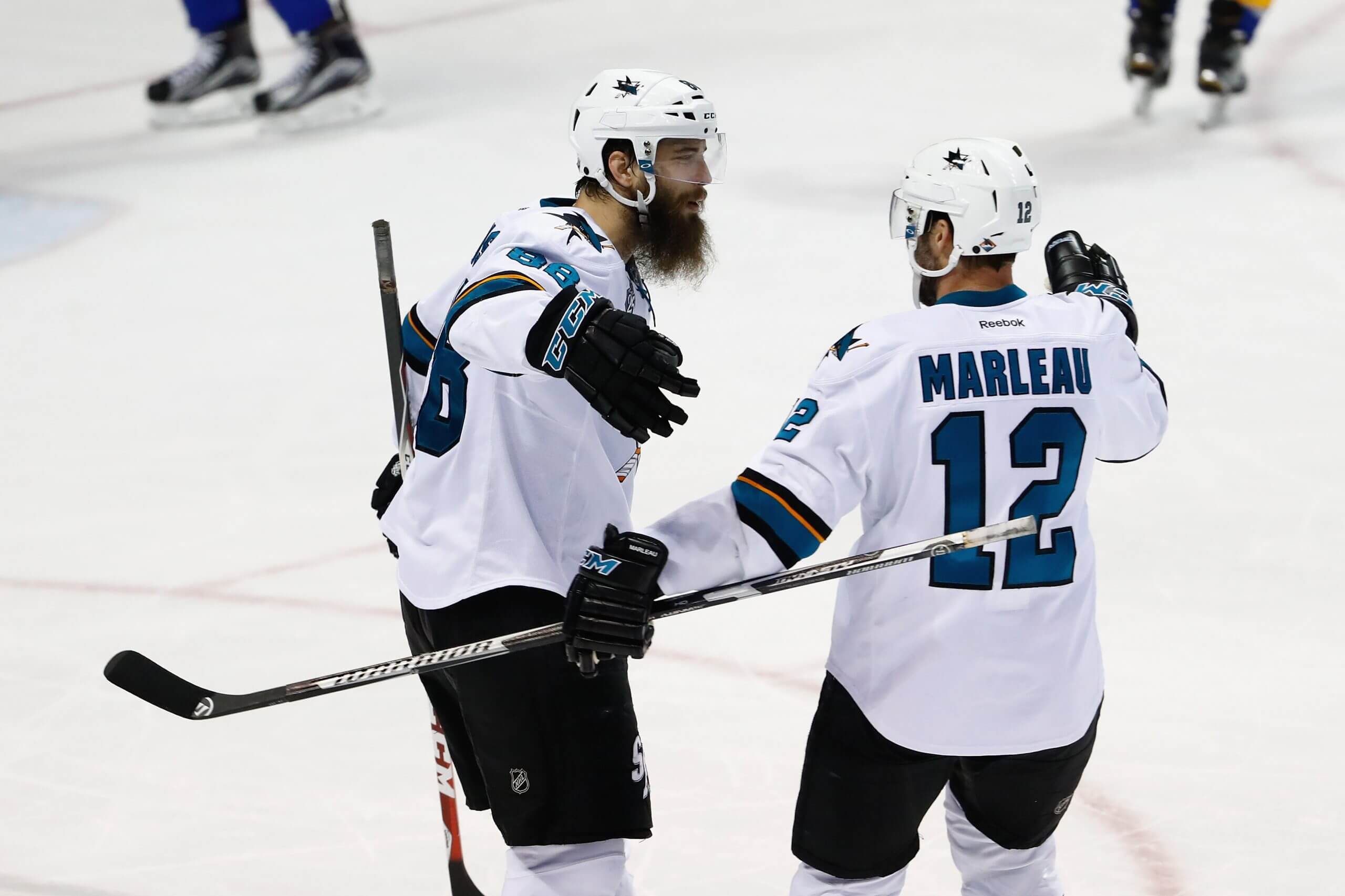 Brent Burns has a shot at former teammate Patrick Marleau’s games played record. (Jamie Squire / Getty Images)