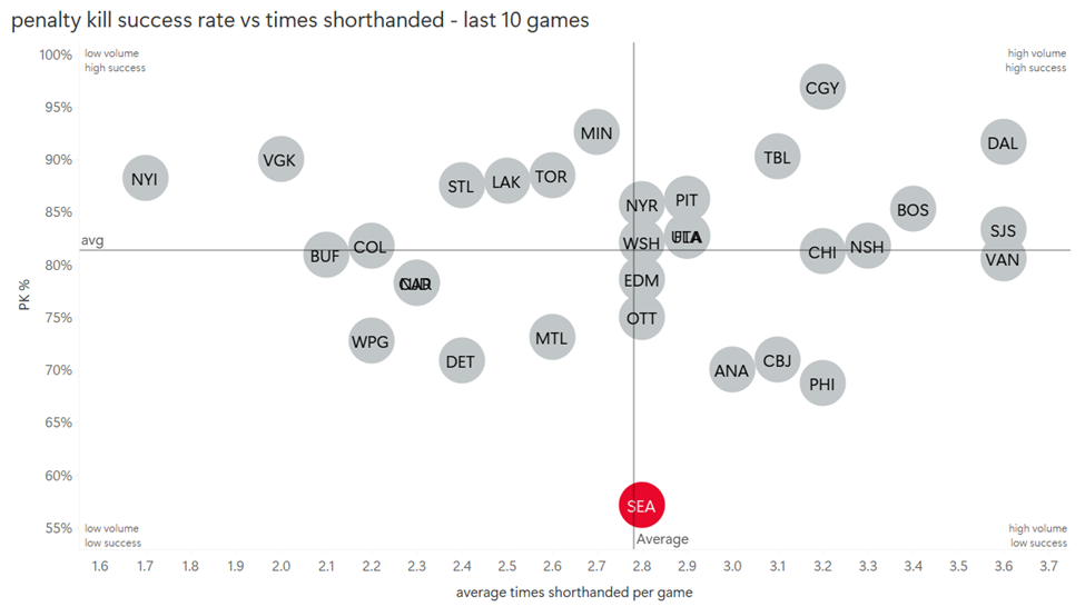It’s been a hot topic on this site and the Sound Of Hockey Podcast, but the penalty kill has been rough lately. Here’s a look at the numbers over the last 10 games.
