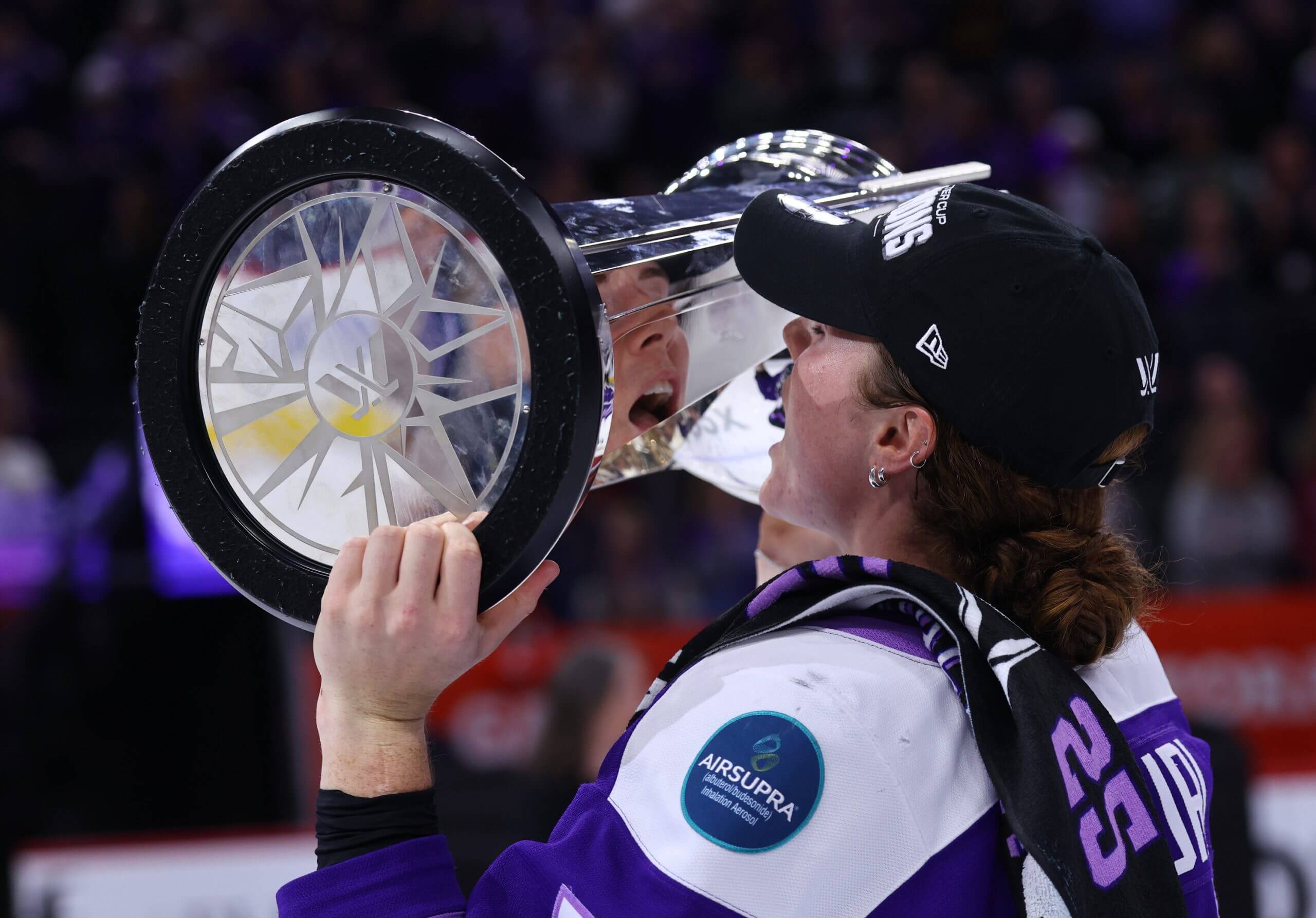 Britta Curl-Salemme, who won the PWHL’s Walter Cup earlier this year, has drawn ire for her past social media activity, which includes liking a post by conservative commentator Candace Owens, who has been known to promote conspiracy theories. (Adam Bettcher / Getty Images)