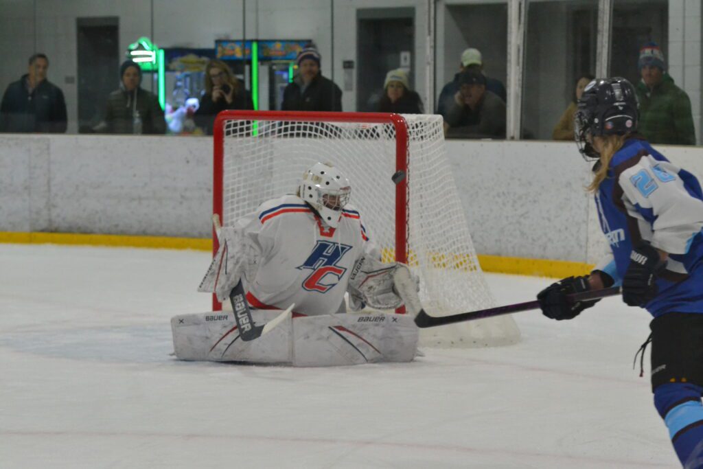 Staring down a two-goal deficit with just 15 minutes to play, Hall/Conard began playing its best hockey at both ends of the ice. They scored their first of the game and the season just under five minutes in. Mia Longman found Campbell with a pass at the blue line and she let go a low shot. Cohane was in the perfect spot and tipped it past Maynard to make it a 2-1 game.