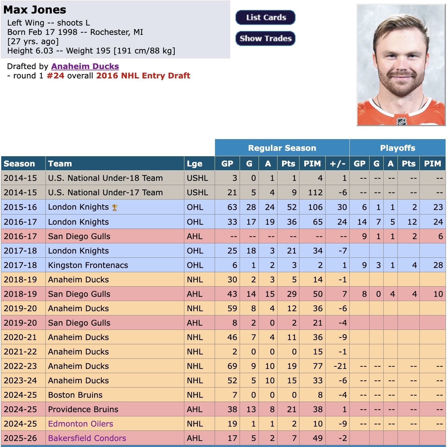 Eight other forwards have more points than Jones in Bakersfield, but the Oilers are clearly filling a role here, not bringing in the top prospect or the best player available.