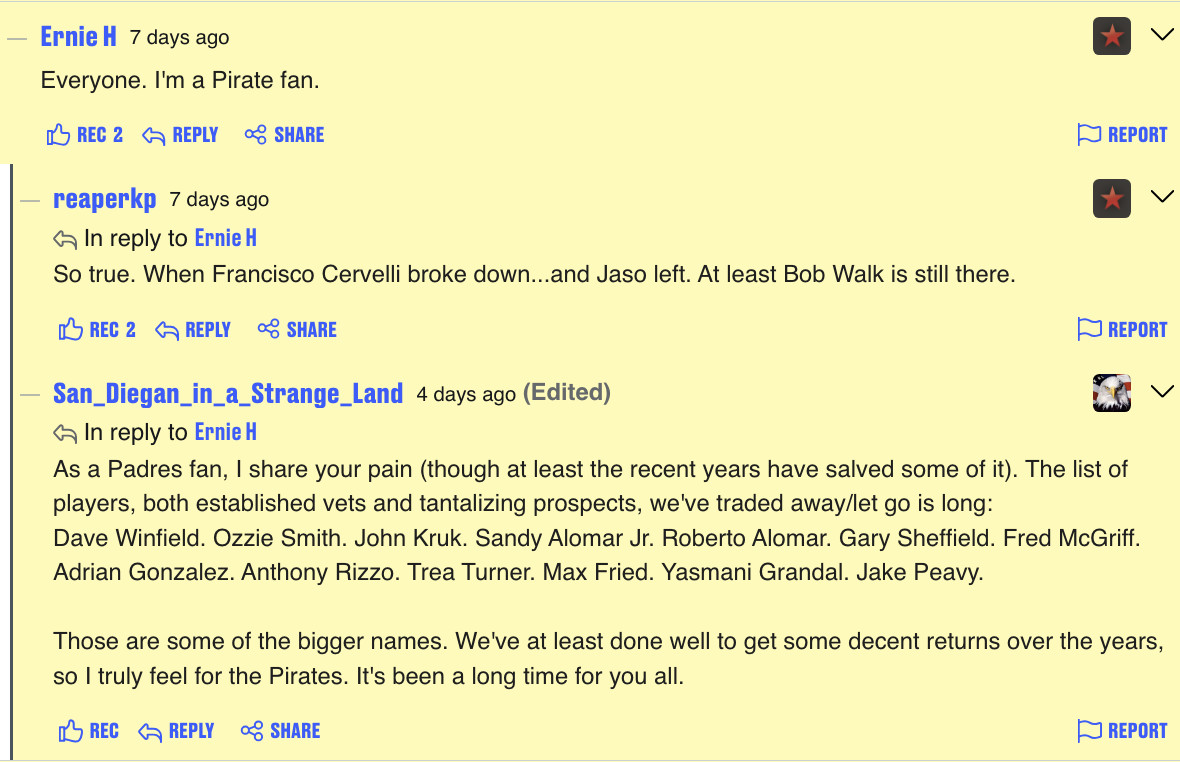 We processed our feelings by discussing which athletes we saw play only to break out hearts when they left our teams. SB Nation commenters had some great responses.