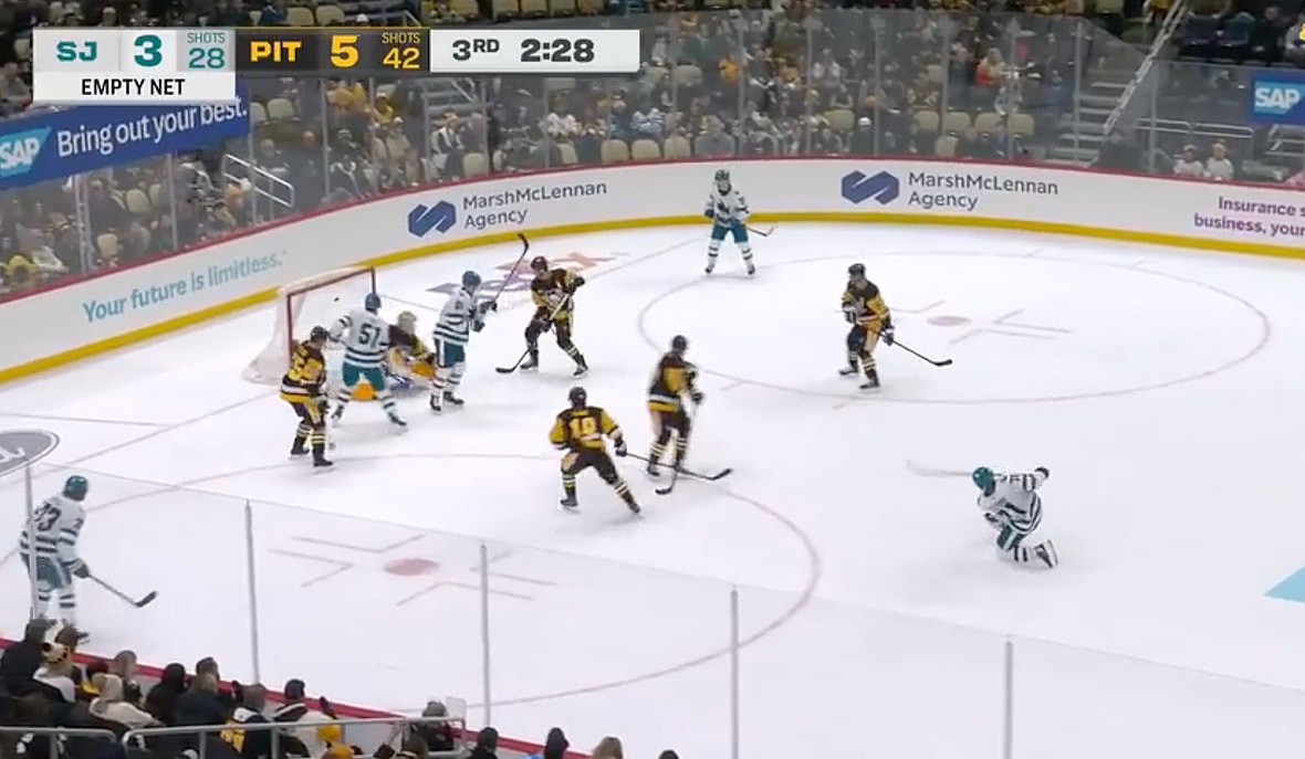 In each of the empty net goals over the past week-plus, the opponent has controlled the area around the net and done so with the puck. That’s the common theme the Penguins seem to be missing.