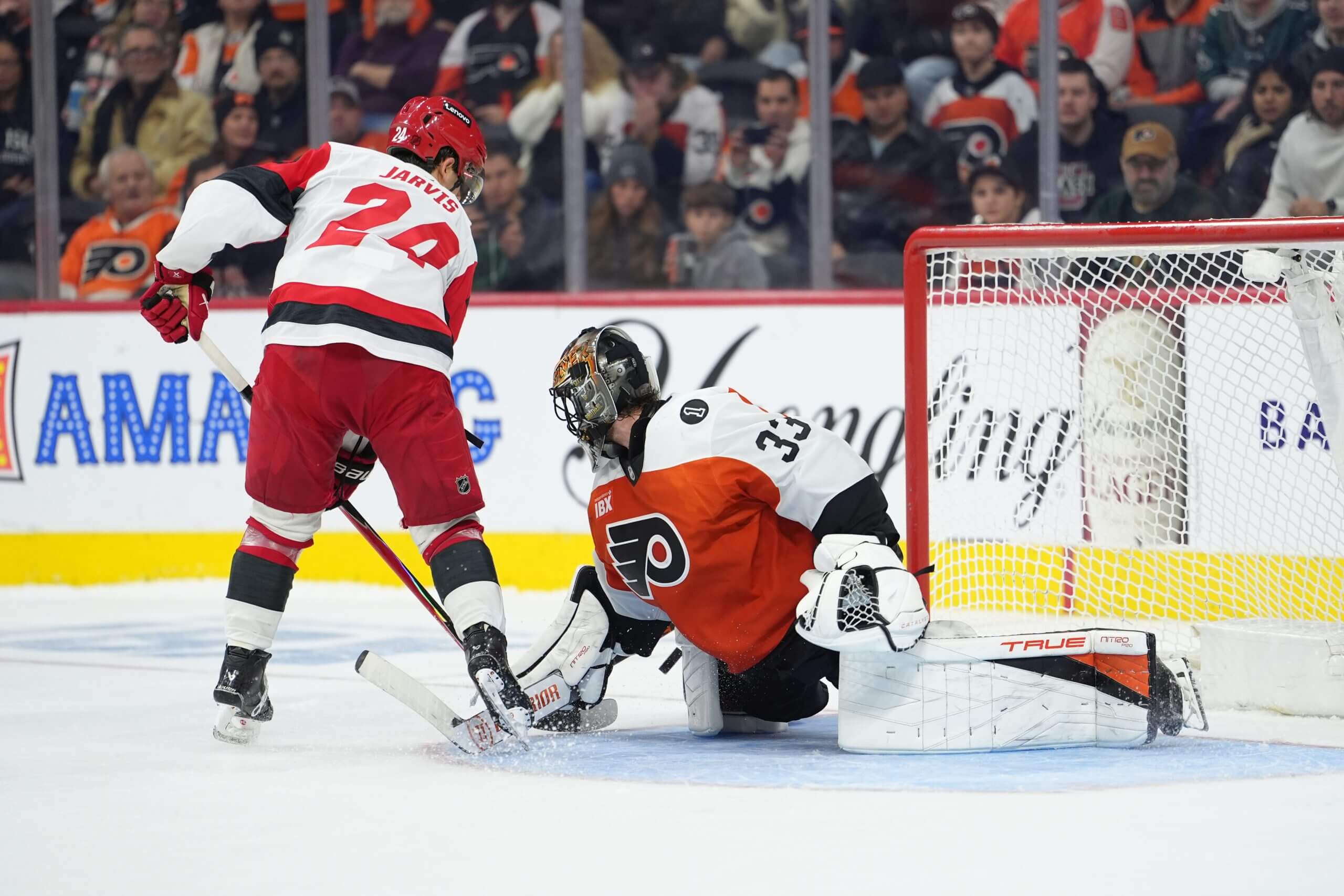 And though Vladar has maintained his generally outstanding level of play, Ersson has found a groove lately, too. Saturday’s 4-3 shootout loss to the Carolina Hurricanes at Xfinity Mobile Arena was another one of those games in which Ersson’s numbers (18 saves on 21 shots) don’t reflect how important he was in helping the club earn a point, as the first-place Hurricanes outplayed the Flyers from a few minutes into the second period through overtime.