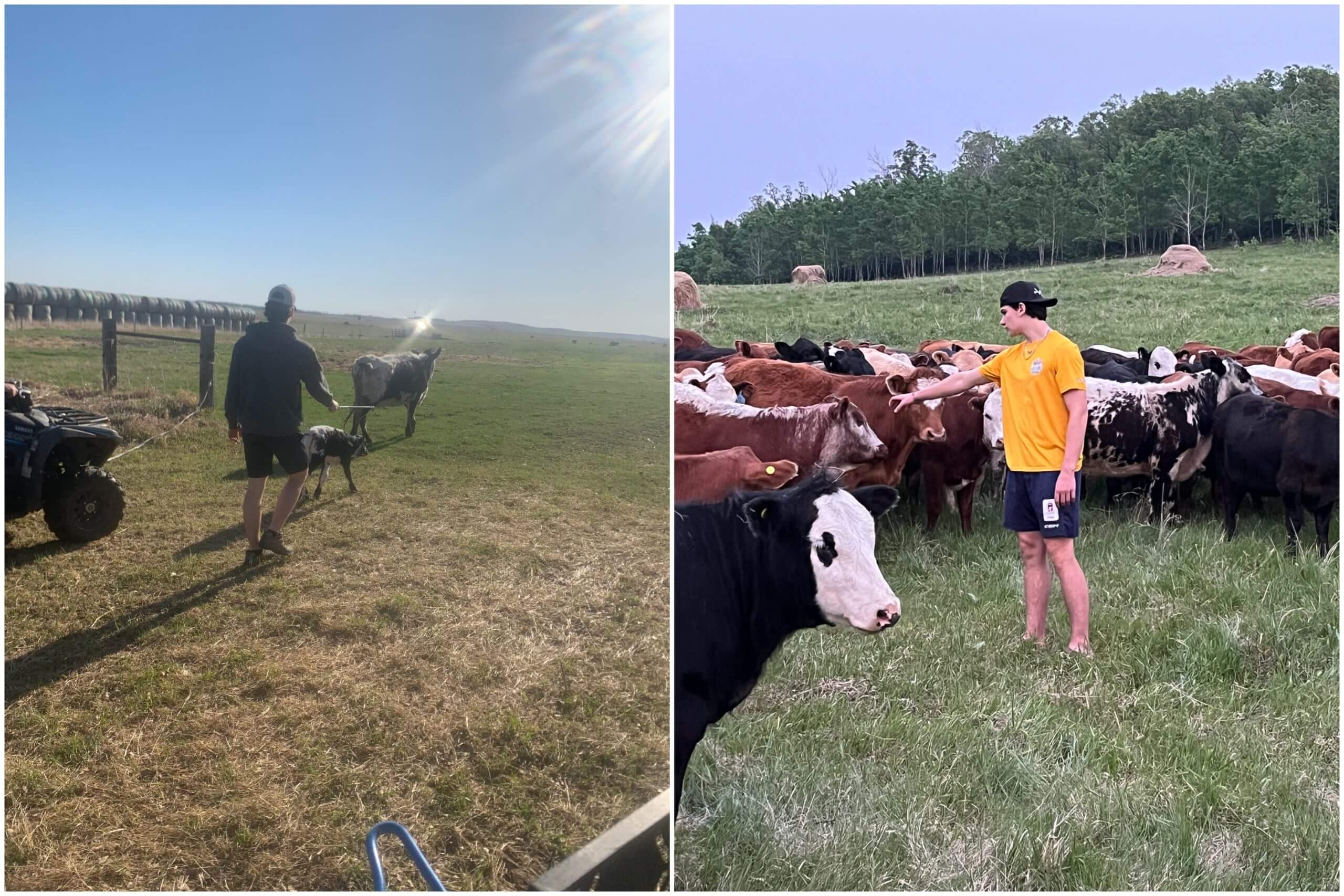 Home is Cypress River, Manitoba, which he describes as a “small town of about 50 people in the middle of nowhere,” one hour southeast of Brandon and two hours southwest of Winnipeg. His family’s farm is five minutes out of town and has passed through multiple generations of Carels now. His grandfather was one of 12 kids, and his dad, Ryan, has helped turn it into a family-run business that now has 500 head of cattle. They used to work in dairy, but these days they’re a growing beef operation.