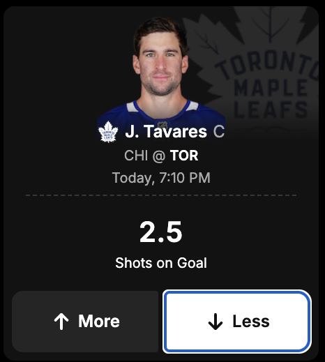 DraftKings Network projection: 54% likely to have LESS than 2.5 Shots on Goal