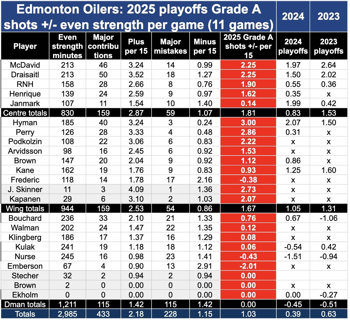 The Oilers went from giving up 37 Grade A shots in Games 2 and 3 to just 26 Grade A shots in Games 4 and 5, a massive reduction.