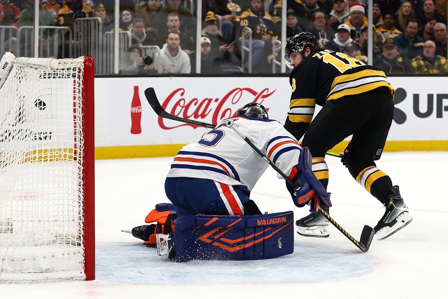 Something didn’t look right when Tristan Jarry made a second-period save on the Bruins’ Morgan Geekie. And though Jarry would stay in for a few more minutes, Jarry’s discomfort ultimately led to his exit, as well as a cold Calvin Pickard coming off the Edmonton bench and into action for the club.