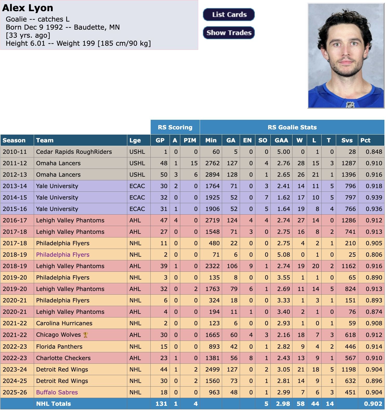 3. Lyon doesn’t come across as someone who could seize the starting job but could maybe hold it down for awhile. But it’s worth noting that Calvin Pickard has done much better in recent starts.