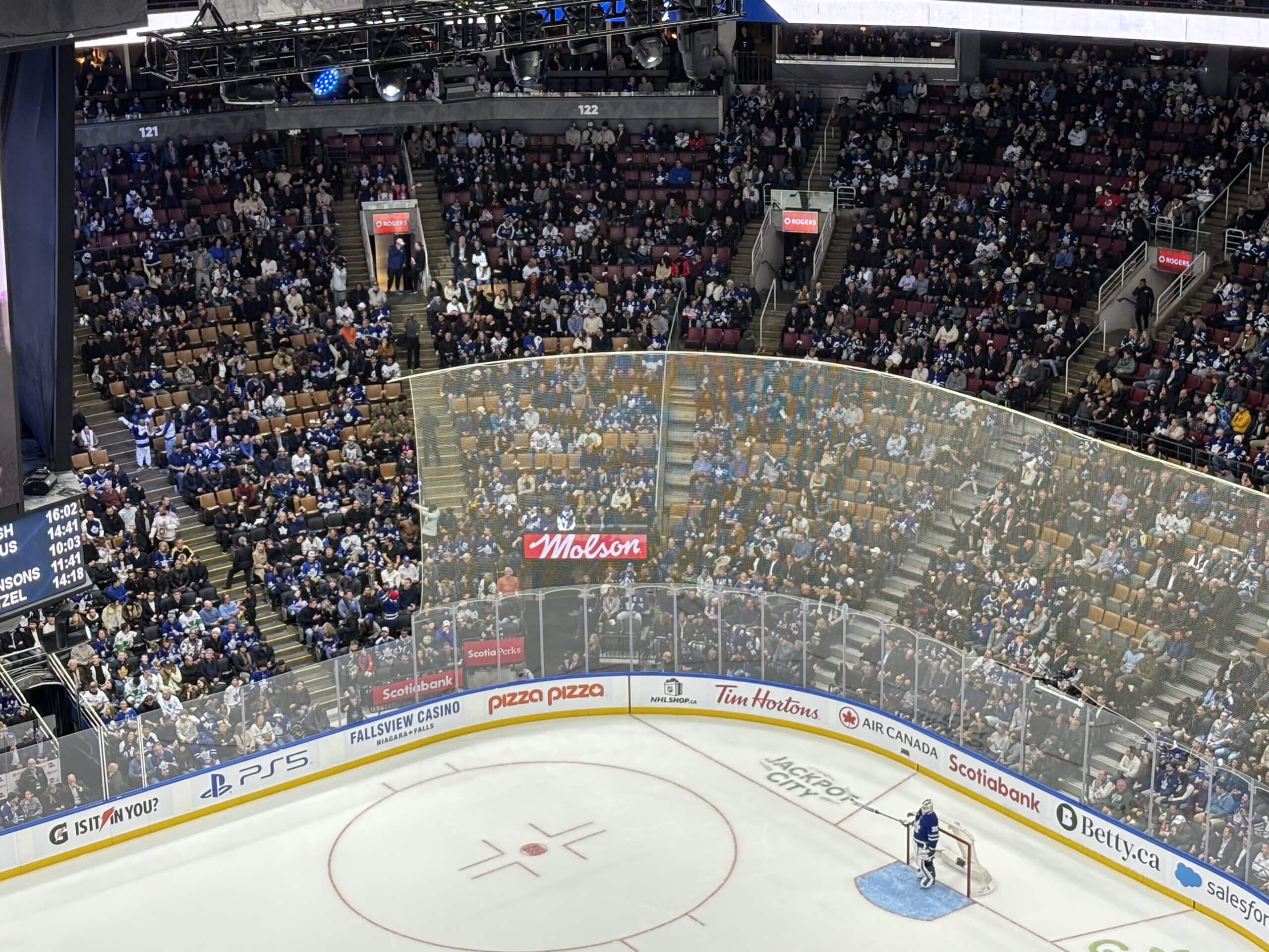 Capacity at Scotiabank Arena is 18,819. But the team announced below-capacity crowds of 18,438 for the Nov. 20 game against the Columbus Blue Jackets, 18,353 for the Nov. 18 game against the St. Louis Blues, and 18,305 for the Nov. 13 game against the Los Angeles Kings.