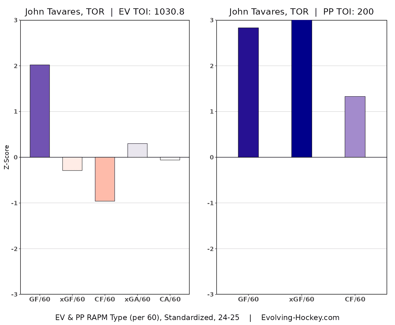 He’s no spring chicken, but Tavares is still a very good player, which much of his impact coming via his powerplay usage. He’s also a talented playmaker, which would suit a winger such as Demidov.