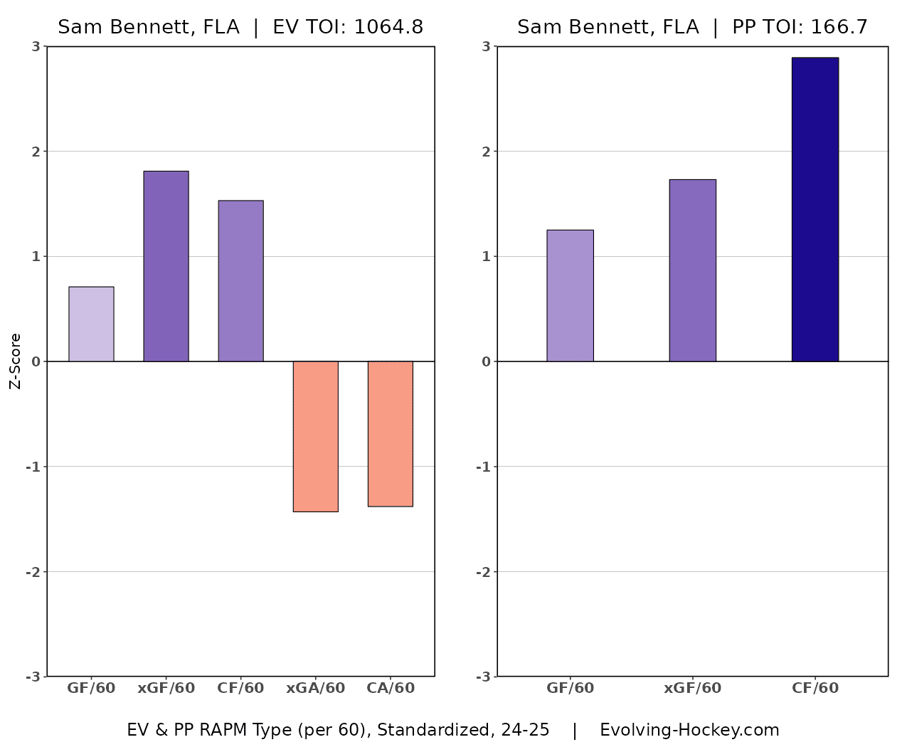 He’s an ‘analytics darling’, which is just a contrived way of saying he’s a good player. Simply put, when he’s on the ice, the Florida Panthers tend to dominate. He also plays alongside Matthew Tkachuk, which means he’s clearly not the only one driving the play on his line, and that could be seen as a red flag depending on how much he’ll want on the open market.