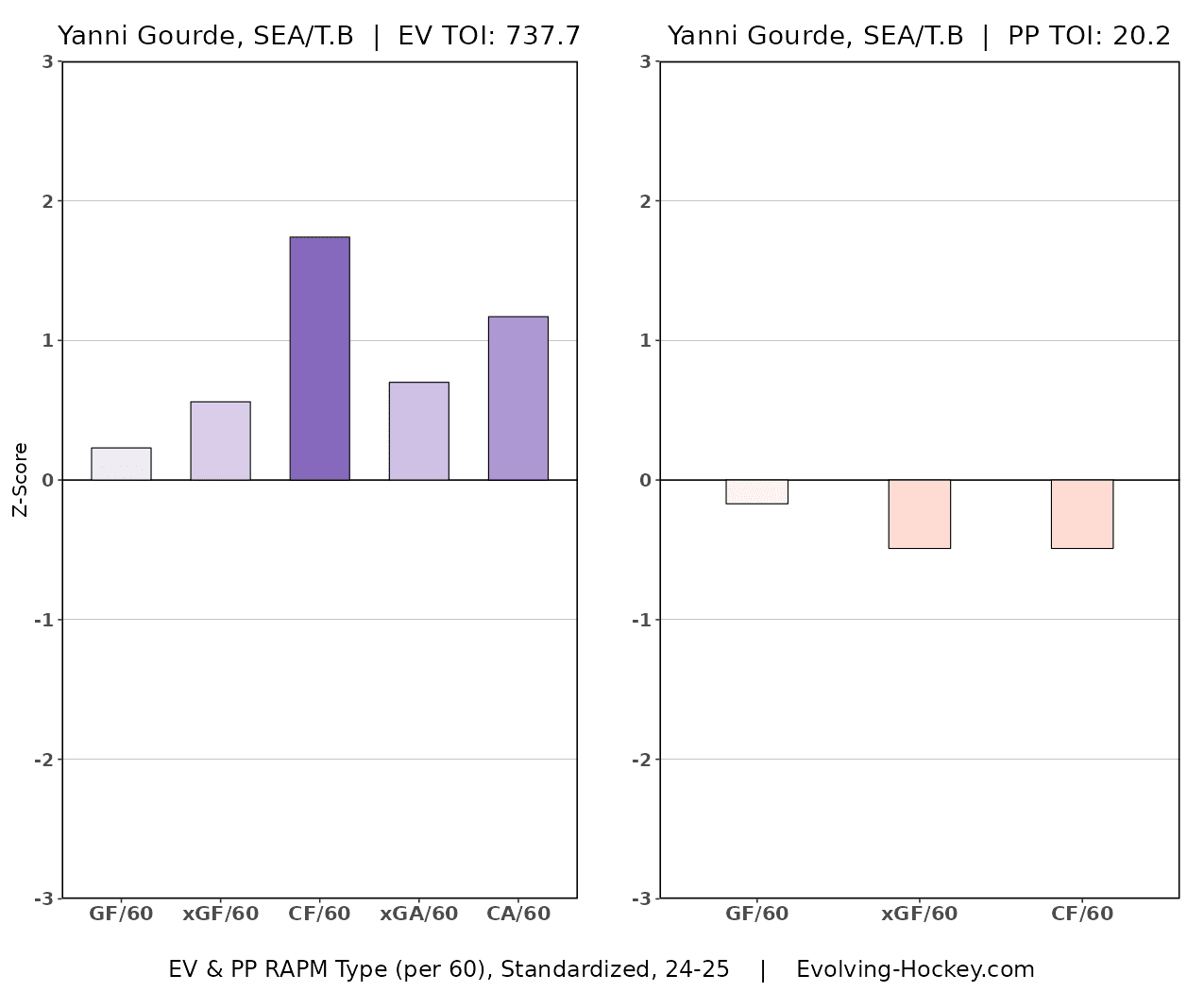 Yanni Gourde, Seattle Kraken/Tampa Bay Lightning, 33 years old, 53GP, 7G, 21A, 28PTS, Cap Hit: $5,166,667