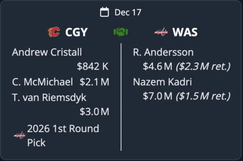 The Flames would be foolish to trade Rasmus Andersson and Nazem Kadri together. Unless you’re getting Macklin Celebrini or Connor Bedard… what are you doing? Okay, maybe that’s just me being overdramatic.