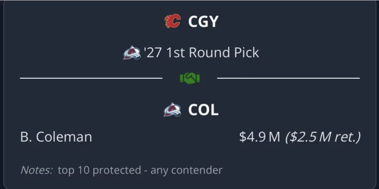 Andrew Mangiapane got you a second-round pick. In what world is Blake Coleman bringing in a first in the year 2025? That’s not a knock on Coleman; he is still very effective. We’ve seen that so far this season, and there’s plenty of gas in the tank. I don’t think too many GMs are handing out first-round picks for third liners. If it sounds too good to be true, it probably is.