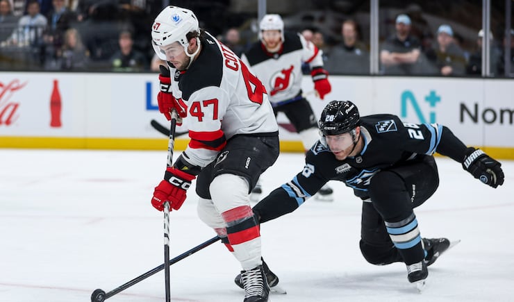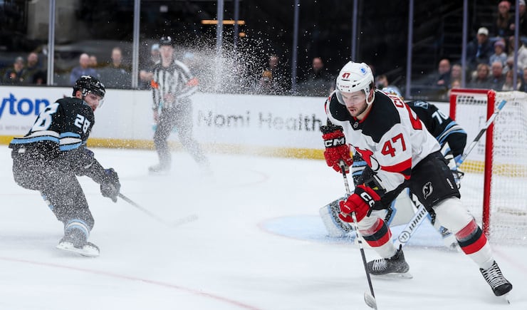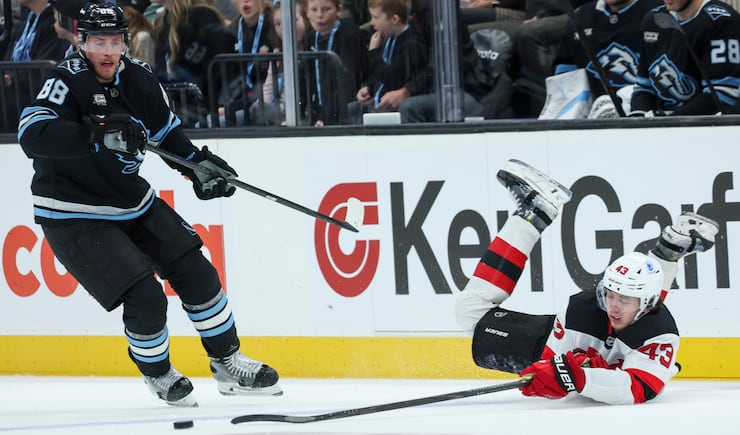 New Jersey Devils left wing Paul Cotter (47) controls the puck ahead of Utah Mammoth defenseman Ian Cole (28) during the second period of an NHL game at the Delta Center in Salt Lake City on Friday, Dec. 19, 2025. | Rio Giancarlo, Deseret News Utah Mammoth center Kevin Stenlund (82) moves the puck against New Jersey Devils center Juho Lammikko (83) during the first period of an NHL game at the Delta Center in Salt Lake City on Friday, Dec. 19, 2025. | Rio Giancarlo, Deseret News Utah Mammoth right wing Dylan Guenther (11) shoots the puck during the first period of an NHL game against the New Jersey Devils at the Delta Center in Salt Lake City on Friday, Dec. 19, 2025. | Rio Giancarlo, Deseret News Utah Mammoth center Alexander Kerfoot (15) controls the puck against New Jersey Devils center Luke Glendening (14) and defenseman Colton White (45) during the first period of an NHL game at the Delta Center in Salt Lake City on Friday, Dec. 19, 2025. | Rio Giancarlo, Deseret News Utah Mammoth left wing Lawson Crouse (67) controls the puck ahead of New Jersey Devils center Nico Hischier (13) during the first period of an NHL game at the Delta Center in Salt Lake City on Friday, Dec. 19, 2025. | Rio Giancarlo, Deseret News Utah Mammoth left wing Daniil But (19) celebrates after scoring his first NHL goal during the first period of an NHL game against the New Jersey Devils at the Delta Center in Salt Lake City on Friday, Dec. 19, 2025. | Rio Giancarlo, Deseret News Utah Mammoth left wing Daniil But (19) celebrates with defenseman Sean Durzi (50) after scoring his first NHL goal during the first period of an NHL game against the New Jersey Devils at the Delta Center in Salt Lake City on Friday, Dec. 19, 2025. | Rio Giancarlo, Deseret News Utah Mammoth left wing Daniil But (19) celebrates with defenseman Sean Durzi (50) after scoring his first NHL goal during the first period of an NHL game against the New Jersey Devils at the Delta Center in Salt Lake City on Friday, Dec. 19, 2025. | Rio Giancarlo, Deseret News Utah Mammoth goaltender Karel Vejmelka (70) looks on during the second period of an NHL game against the New Jersey Devils at the Delta Center in Salt Lake City on Friday, Dec. 19, 2025. | Rio Giancarlo, Deseret News New Jersey Devils defenseman Luke Hughes (43) falls to the ice after being cross-checked by Utah Mammoth defenseman Nate Schmidt (88) during the first period of an NHL game at the Delta Center in Salt Lake City on Friday, Dec. 19, 2025. | Rio Giancarlo, Deseret News Utah Mammoth defenseman Nate Schmidt (88) looks to control the puck during the first period of an NHL game against the New Jersey Devils at the Delta Center in Salt Lake City on Friday, Dec. 19, 2025. | Rio Giancarlo, Deseret News Utah Mammoth defenseman Ian Cole (28) deflects a pass intended for New Jersey Devils left wing Paul Cotter (47) during the second period of an NHL game at the Delta Center in Salt Lake City on Friday, Dec. 19, 2025. | Rio Giancarlo, Deseret News The New Jersey Devils bench reacts after a goal by New Jersey Devils right wing Connor Brown (16) during the second period of an NHL game against the Utah Mammoth at the Delta Center in Salt Lake City on Friday, Dec. 19, 2025. | Rio Giancarlo, Deseret News New Jersey Devils right wing Connor Brown (16) skates past the Utah Mammoth bench after scoring during the second period of an NHL game at the Delta Center in Salt Lake City on Friday, Dec. 19, 2025. | Rio Giancarlo, Deseret News Utah Mammoth defenseman Nate Schmidt (88) yells to his teammates during the first period of an NHL game against the New Jersey Devils at the Delta Center in Salt Lake City on Friday, Dec. 19, 2025. | Rio Giancarlo, Deseret News Utah Mammoth left wing Daniil But (19) celebrates with his teammates after scoring his first NHL goal during the first period of an NHL game against the New Jersey Devils at the Delta Center in Salt Lake City on Friday, Dec. 19, 2025. | Rio Giancarlo, Deseret News Utah Mammoth defenseman John Marino (6) shoots the puck during the first period of an NHL game against the New Jersey Devils at the Delta Center in Salt Lake City on Friday, Dec. 19, 2025. | Rio Giancarlo, Deseret News Utah Mammoth right wing Dylan Guenther (11) looks to shoot around New Jersey Devils defenseman Jonas Siegenthaler (71) during the first period of an NHL game at the Delta Center in Salt Lake City on Friday, Dec. 19, 2025. | Rio Giancarlo, Deseret News Utah Mammoth center Barrett Hayton (27) fights for position with New Jersey Devils defenseman Jonas Siegenthaler (71) during the third period of an NHL game at the Delta Center in Salt Lake City on Friday, Dec. 19, 2025. | Rio Giancarlo, Deseret News New Jersey Devils goaltender Jacob Markström (25) watches as a puck crosses the red line for icing during the first period of an NHL game against the Utah Mammoth at the Delta Center in Salt Lake City on Friday, Dec. 19, 2025. | Rio Giancarlo, Deseret News Utah Mammoth left wing Daniil But (19) looks on before a face-off during the third period of an NHL game against the New Jersey Devils at the Delta Center in Salt Lake City on Friday, Dec. 19, 2025. | Rio Giancarlo, Deseret News Utah Mammoth right wing Dylan Guenther (11) looks to shoot during the third period of an NHL game against the New Jersey Devils at the Delta Center in Salt Lake City on Friday, Dec. 19, 2025. | Rio Giancarlo, Deseret News Utah Mammoth center Jack McBain (22) and New Jersey Devils defenseman Colton White (45) battle for position in front of the net during the first period of an NHL game at the Delta Center in Salt Lake City on Friday, Dec. 19, 2025. | Rio Giancarlo, Deseret News Utah Mammoth left wing Daniil But (19) has his shot saved by New Jersey Devils goaltender Jacob Markström (25) during the first period of an NHL game at the Delta Center in Salt Lake City on Friday, Dec. 19, 2025. | Rio Giancarlo, Deseret News New Jersey Devils right wing Stefan Noesen (11) reacts after scoring a goal during the
