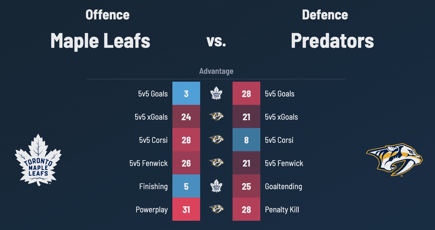 Maple Leafs (15-13-5) vs. Predators (13-16-4): Head-to-Head Stats