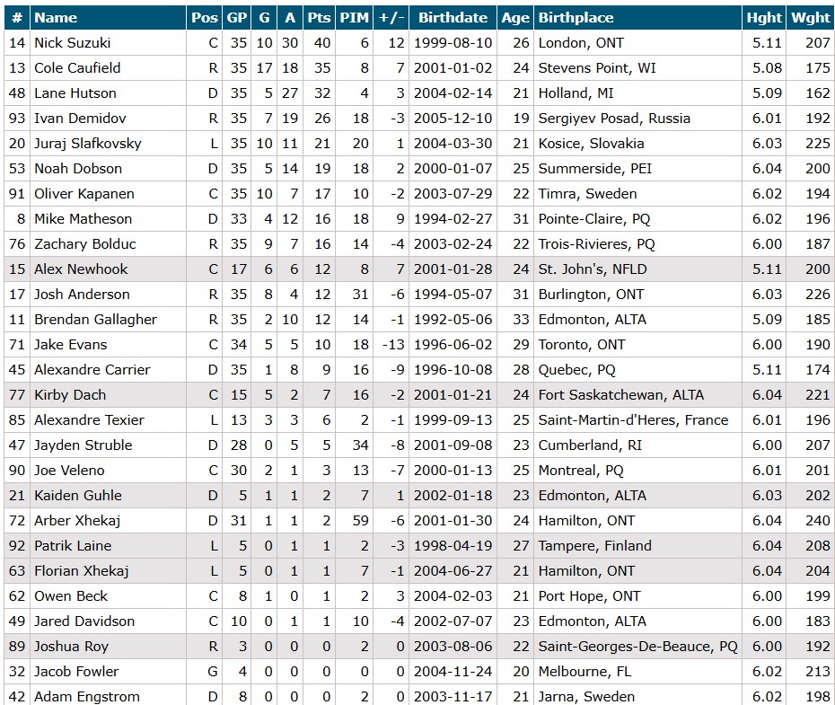 It’s nice to see a team a few times within 10 days to learn more about them. Fowler definitely looks like he will live up to the hype (though as pointed out in the recap, so far he’s had two great outings against the Pens and then not been sharp in his other starts. Annoying!). Suzuki and Caufield are masters. Slafkovsky has impressed scoring a goal in both MTL/PIT games.Demidov has been good in his rookie season, but was very quiet last night. No shot attempts in only 14:21 of ice time during a comfortable win. It’ll be interesting to see what kind of rookie wall he hits, if one at all.Montreal adding Danault back in a trade, for the cost of only a second round pick, looks like a great move for them to make. Danault’s point production can be hit or miss but he is a very reliable checking center and good away from the puck. The Canadiens have enough firepower and guys who can take care of the offense, they could use a player with Danault’s skillset to boost them down the middle.