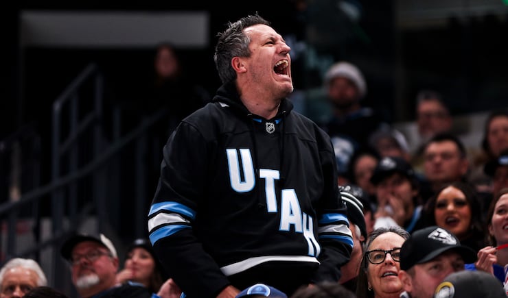 A fan leads a cheer during the third period of an NHL game between the Utah Mammoth and the Winnipeg Jets at the Delta Center in Salt Lake City on Sunday, Dec. 21, 2025. | Rio Giancarlo, Deseret News
