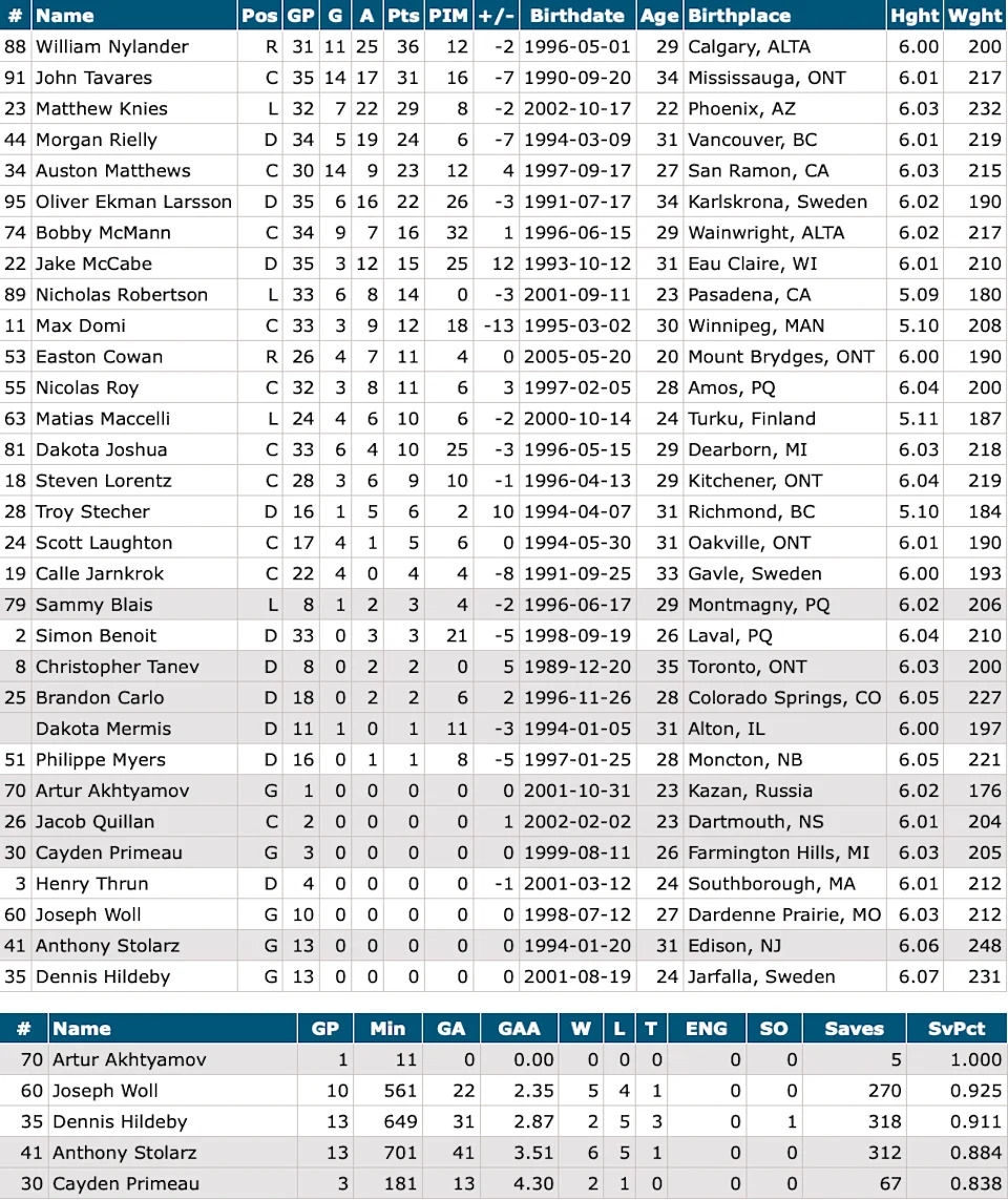 Injured Reserve: Anthony Stolarz, Chris Tanev, Brandon Carlo, Dakota Mermis