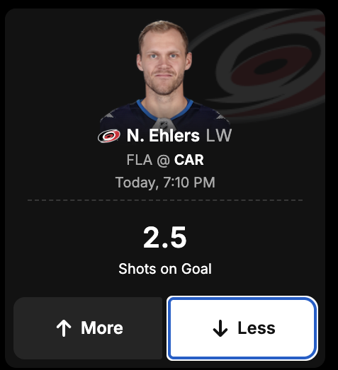 DraftKings Network projection: 54% likely to have LESS than 2.5 Shots on Goal