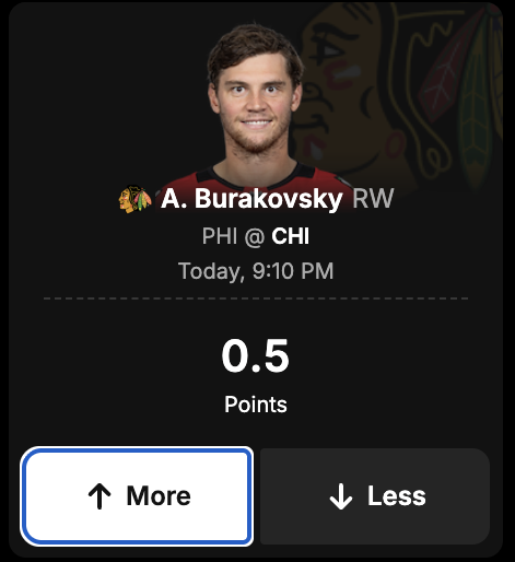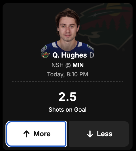 DraftKings Network projection: 54% likely to have MORE than 2.5 Shots on Goal
