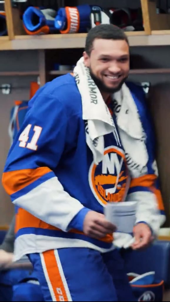 “How cool is this for him?” Islanders captain Anders Lee said. “I think it’s awesome. He’s come in and played really well. He’s so solid back there. It’s not flashy, but it’s calm and collected, and I think he’s playing with a lot of poise for his first few games in the National Hockey League. He’s a really great player and a great addition to our room right now.”