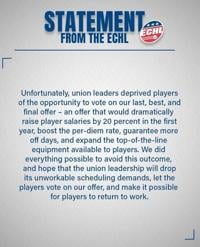 According to the The ECHL’s website, it made its final offer on Christmas Day.