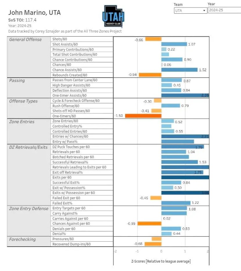 With New Jersey, Marino played with Ryan Graves and Luke Hughes a lot and again was above 50% in xGoals with them.