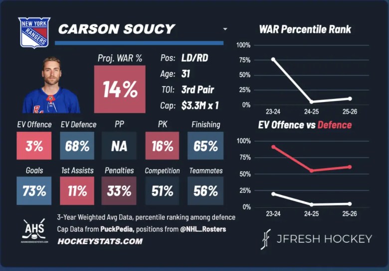 Carson Soucy is someone the Oilers have liked for awhile. Back in 2022, they were considering a trade for him but turned their attention to Brett Kulak. Soucy had a really good stint in Vancouver but fell off a cliff in 24/25 and hasn’t really recovered since.