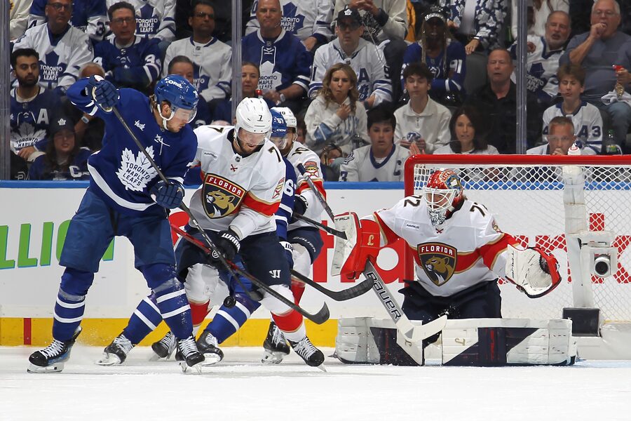 Seth Jones, whose father Popeye once patrolled the court for the Raptors, got the red light warmed up. The defenceman took the puck from Evan Rodrigues, looked off a pass to Sam Reinhart, and fired it high past Joseph Woll for his third of the playoffs just 3:45 in.