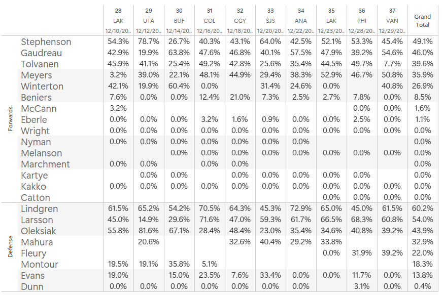 Aside from Larsson being replaced by Josh Mahura, the team ran the same line rushes we saw against Vancouver.