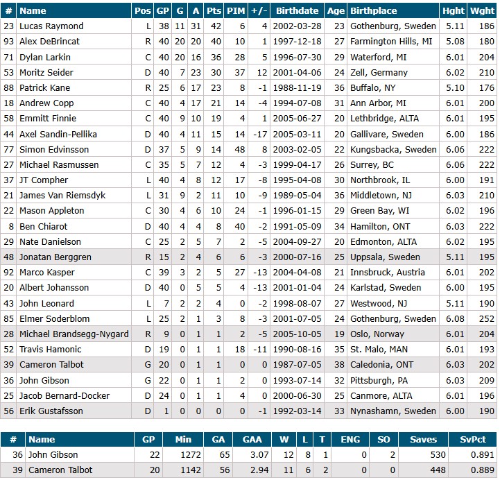 The injury situation has been extremely favorable for the Red Wings in the first half of a season where injuries have been up across the league this year. Detroit has only used 24 different skaters and two goalies (compared to the Pens 33 and 4, respectively) and almost all their key pieces have been healthy enough to play in just about all of the games except for Patrick Kane. Availability can build chemistry and cohesion, it’s been a good formula for Detroit so far.