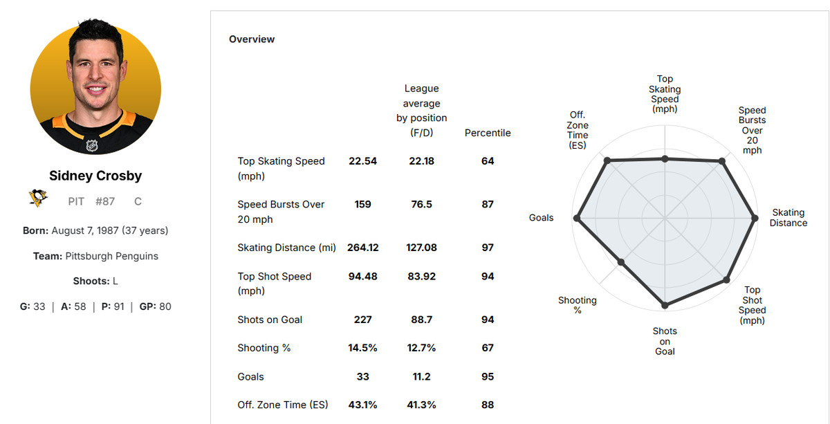 Everything we know about athletes and aging says Sidney Crosby should have dropped off or at least be showing signs of slowing down. He may no longer score with the likes of McDavid of MacKinnon, but Crosby remains and elite player by every measure.