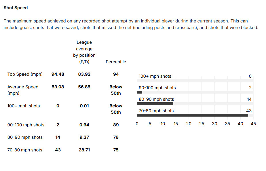 Never one to wind up a let it rip, it’s not surprising to see Crosby’s shot speed to be on the lower when compared league wide. His wrist shot remains lethal as ever and when he does decide to wind up and uncork a clapper he can get the shot into the 80’s and even into the 90’s on the rare occasion. This lack of shot speed has never been a hindrance on his scoring ability.