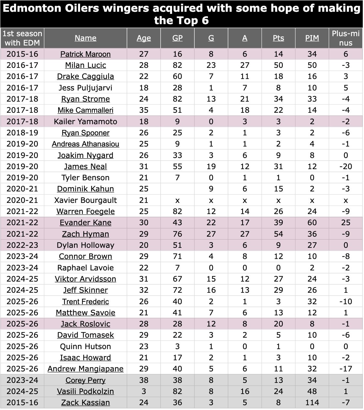 By my count in the 10.5 years of the McDavid and Draisaitl era, no less than 29 forwards have been brought in through drafting, trade or free agency with some hope that they will stick on a line with McDavid or Draisaitl.