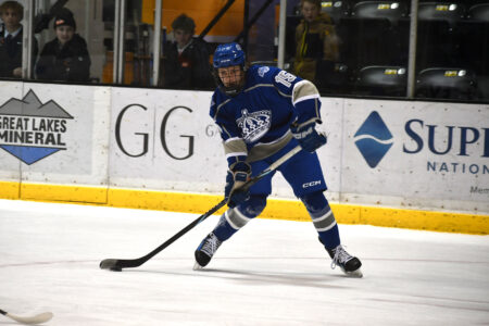 If the first period was the Gremlins’, the second period, especially the first half of the frame, was nearly all Calumet’s. After sophomore forward Oskar Loukus served an early-period penalty, he got involved in trying to make up for it by attacking the Houghton net. He had two looks just 12 seconds apart, first on a rebound and second when he retrieved a puck in near Gremlins goaltender Brycyn Nettell.