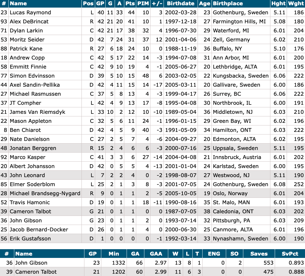 Emmitt Finnie – Dylan Larkin – Lucas Raymond